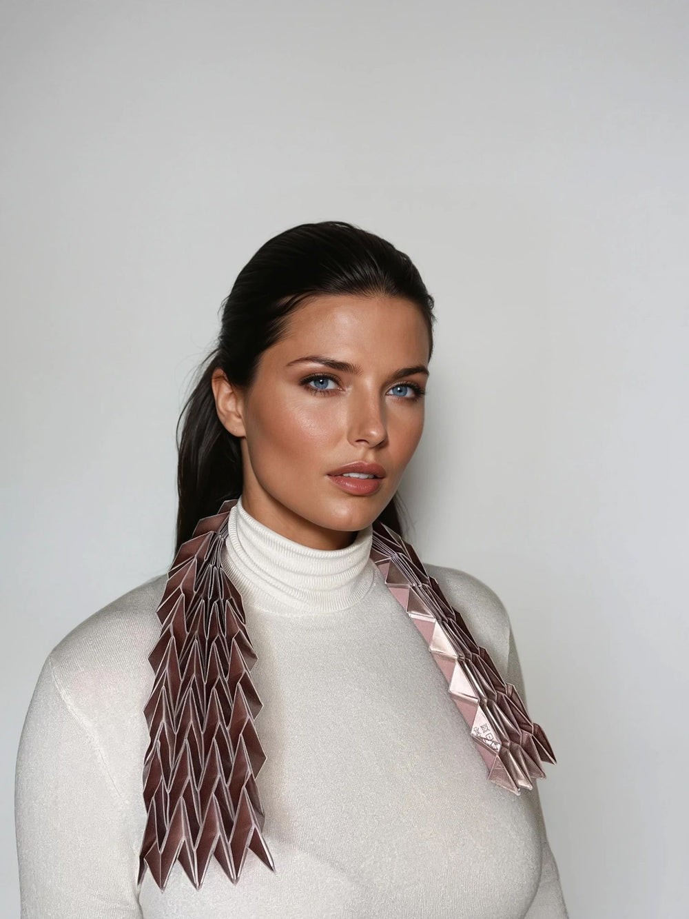 A unique origami Kerchief (mini scarf) with an original design, crafted from innovative textiles with a handcrafted geometric print. Each neck scarf is meticulously pleated and heat-set for lasting structure and includes four magnets—two strong circular magnets and two matching ones in the scarf’s color. Compact and easy to store yet full of presence, this is a statement piece that ensures the wearer will be the center of attention. Presented in a luxurious box, it makes the perfect gift for yourself or a loved one.